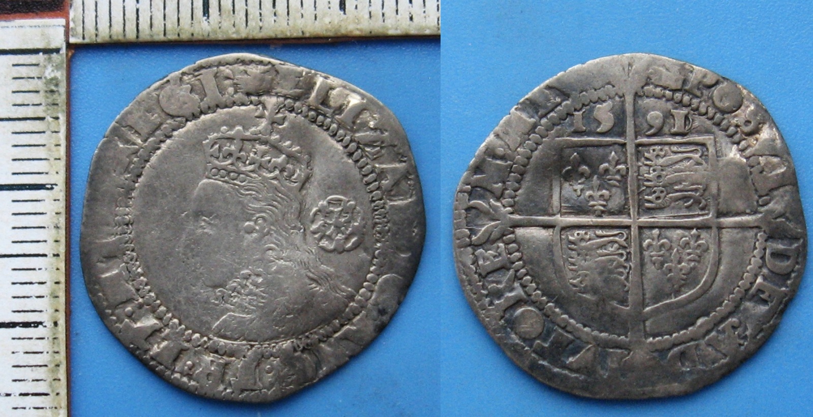 - 1591 - 6 pence, stříbro - Alžběta I., Anglie, Tudorovci