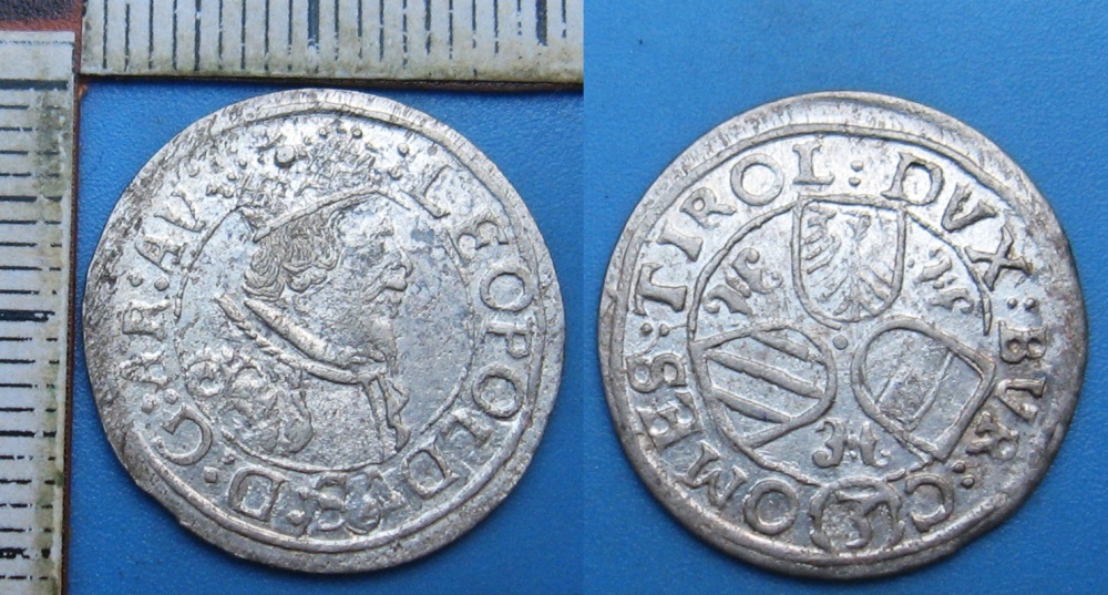 4. 1620-1632 - 3 krejcar, stříbro - arcivévoda Leopold Tyrolský