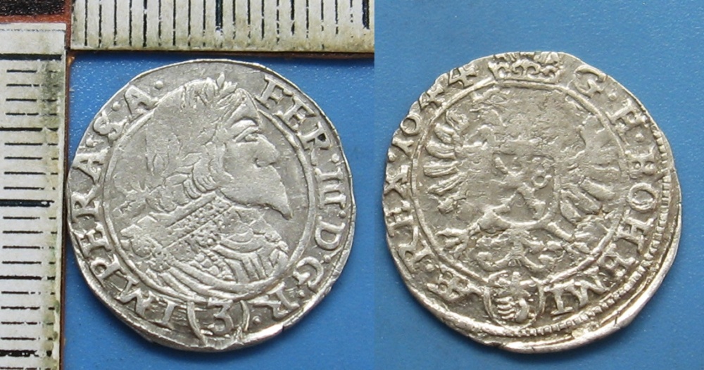 - 1644 - 3 krejcar, stříbro - Ferdinand III., Praha, J.Wolker