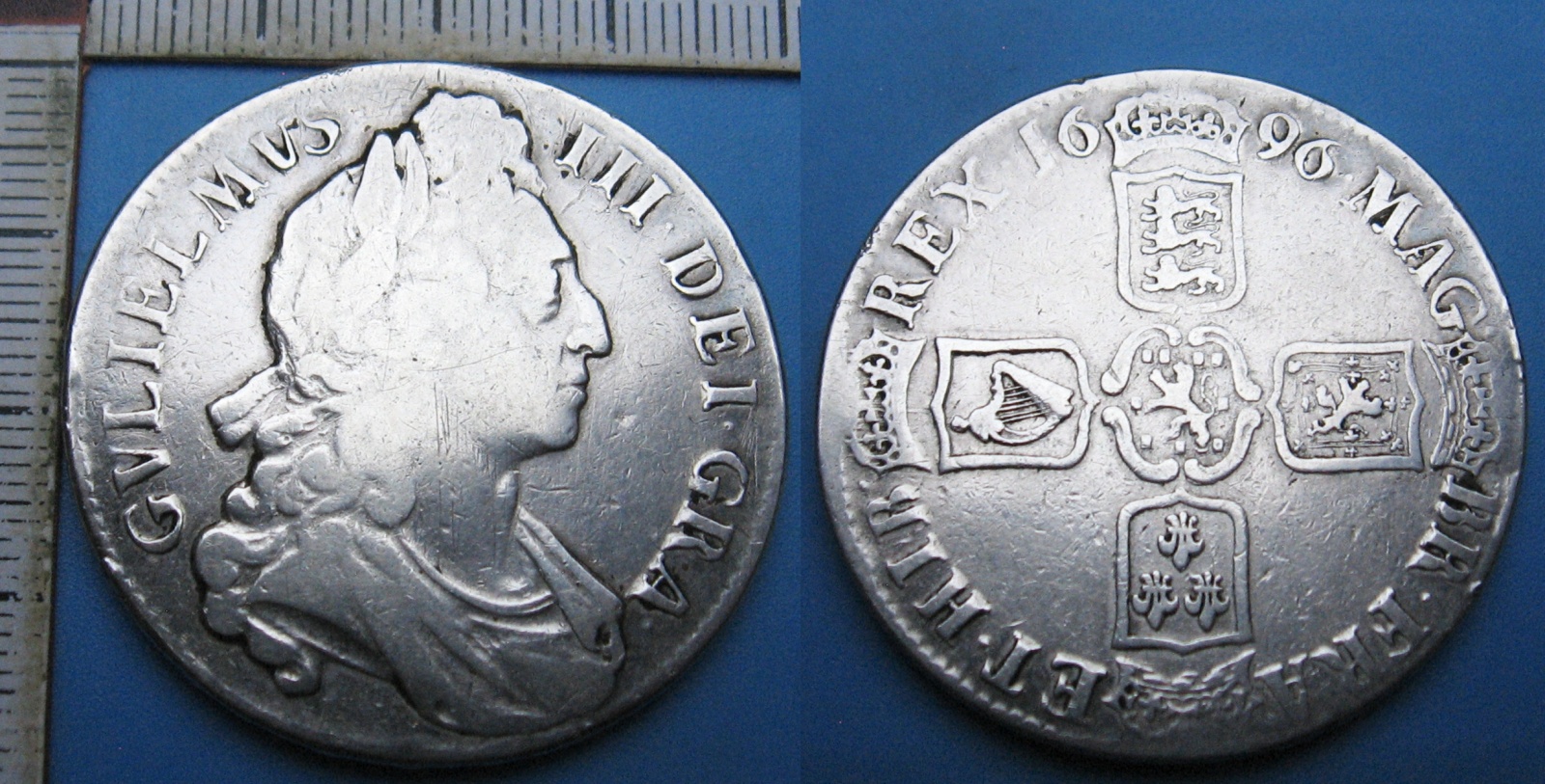 1696 - 1 crown, stříbro - Vilém III., Velká Británie, asi m.o.