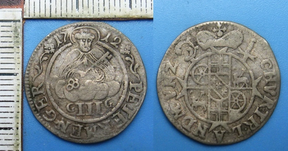 - 1712 GG - 3 petermenger, stříbro - arcibiskupství Trier, Karl Josef of Lorraine, Sv. Petr s klíčem a knihou v oblacích