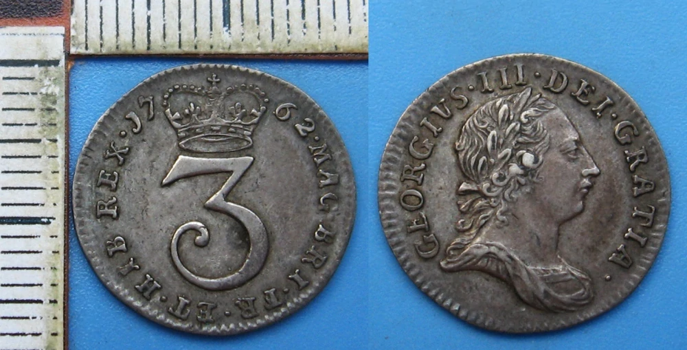1762 - 3 pence, stříbro - Jiří III., Velká Británie, krásnáSkladem1 780 Kč/ ks