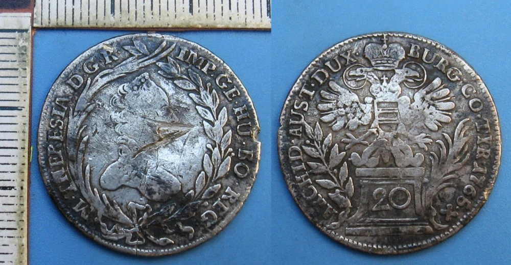 - 1765 - 20 krejcar, stříbro - Marie Terezie, Vídeň