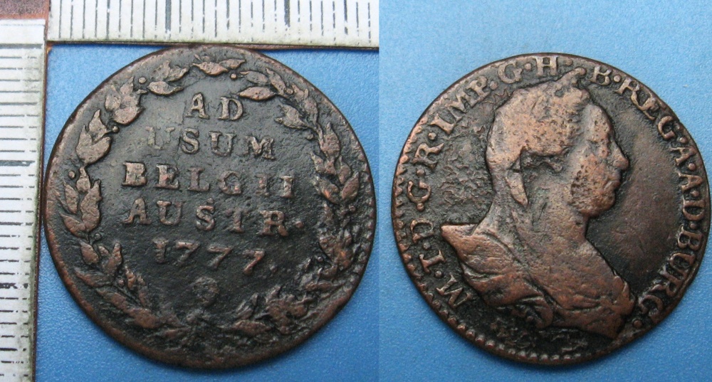 - 1777 - 2 liards, hlava - Marie Terezie, pro Rakouské Nizozemí
