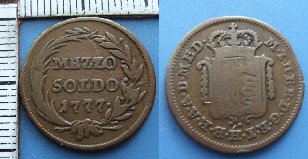 - 1777 - mezzo (1/2) soldo - Marie Terezie, pro Milánsko