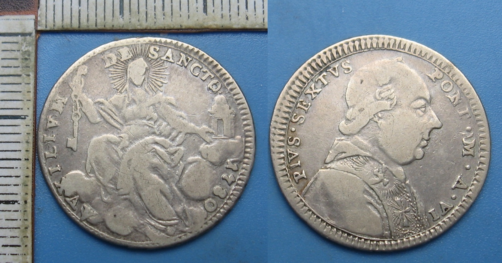 • 1780 / VI - 2 giulio, stříbro - Pius VI., Vatikán, Řím