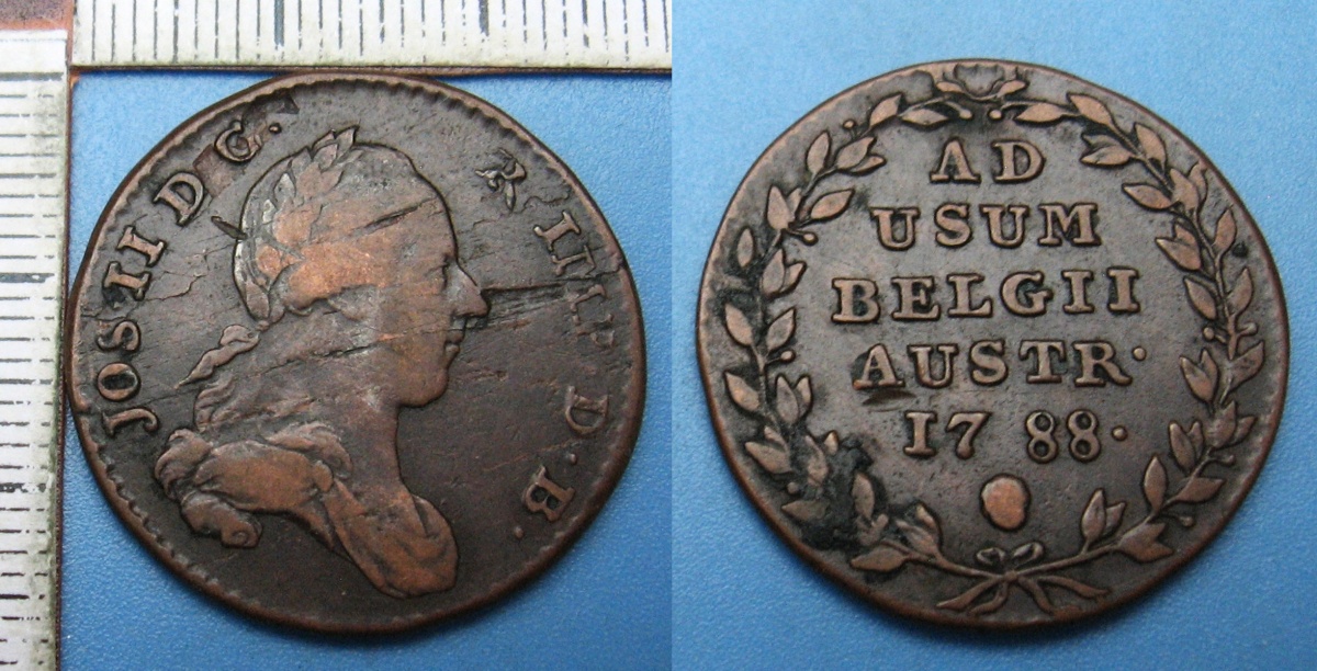 - 1788 - 2 liards, hlava - Josef II., pro Rakouské Nizozemí, vada mater.