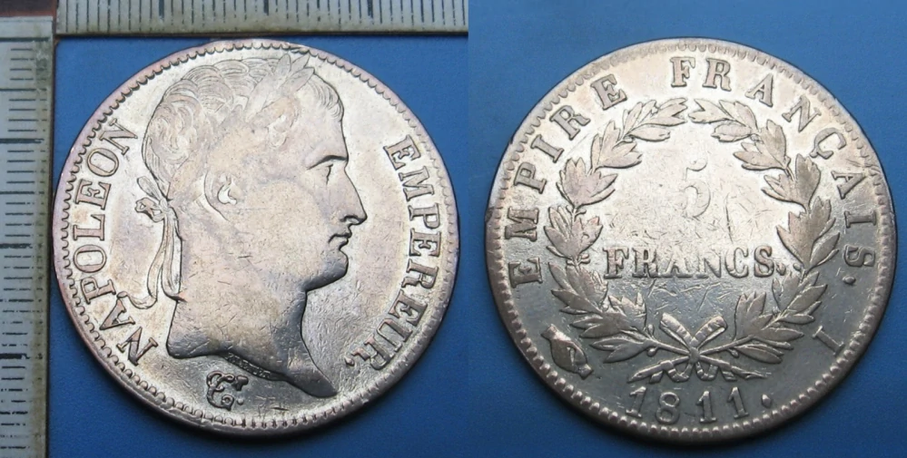 1811 I - 5 francs, stříbro - Francie, Napoleon Bonaparte