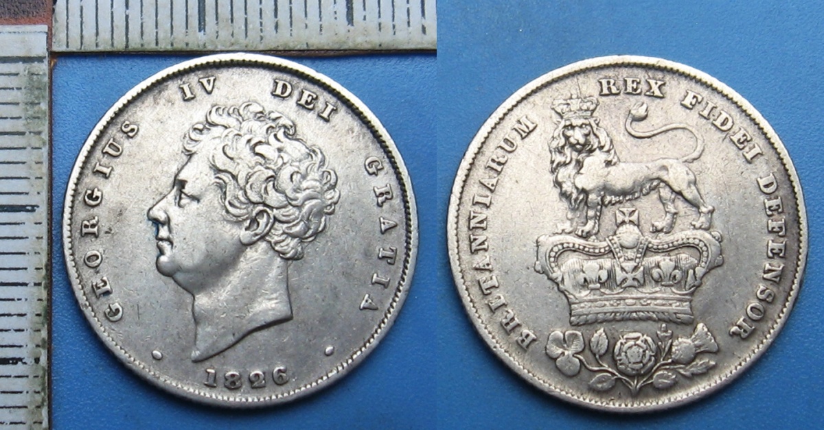 - 1826 - 1 shilling, stříbro - Velká Británie, Jiří IV.