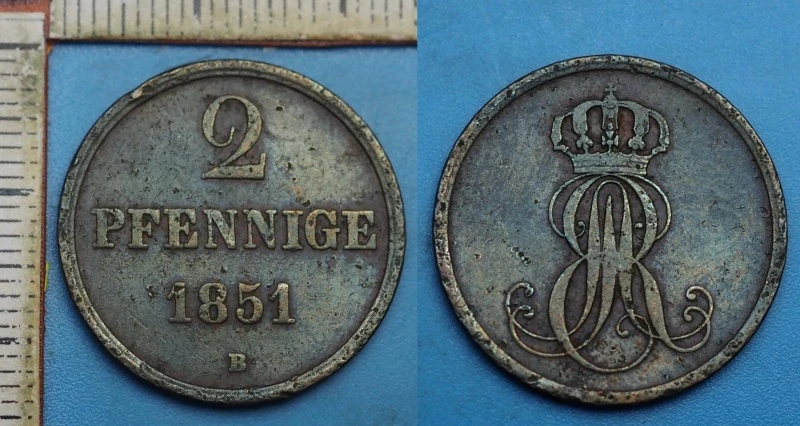 • 1851 B - 2 pfennige - Ernst August I., Hannover