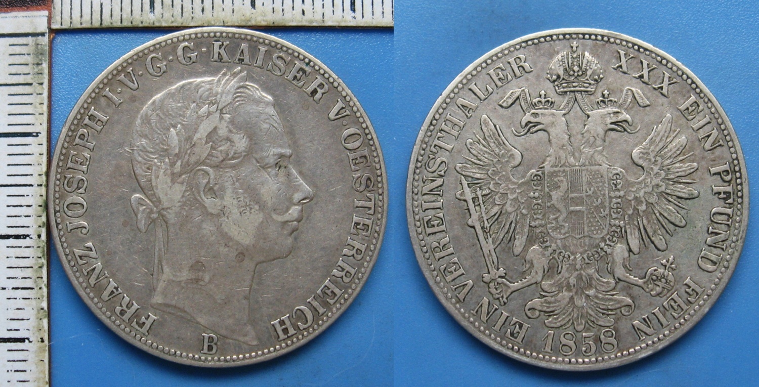 - 1858 B - 1 tolar, stříbro - František Josef I.