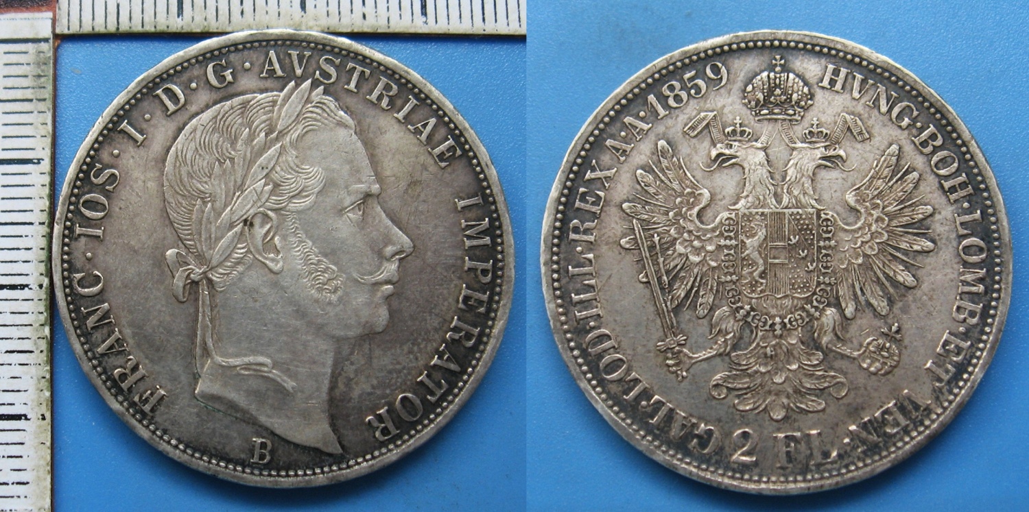 1859 B - 2 zlatník, stříbro - František Josef I., krásný