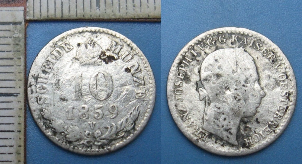 - 1859 V - 10 krejcar, stříbro - František Josef I.