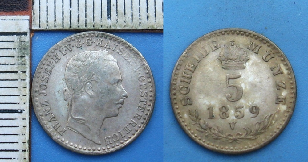 - 1859 V - 5 krejcar, stříbro - František Josef I., vzácnější