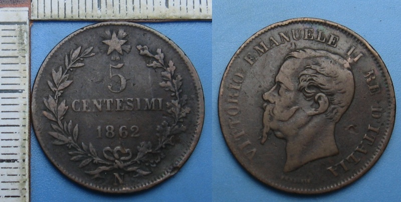 • 1862 N - 5 centesimi - Itálie, Vittorio Emanuele II.