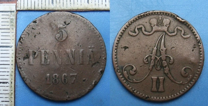 • 1867 - 5 pennia - Finsko pod Ruskem, Alexandr II.