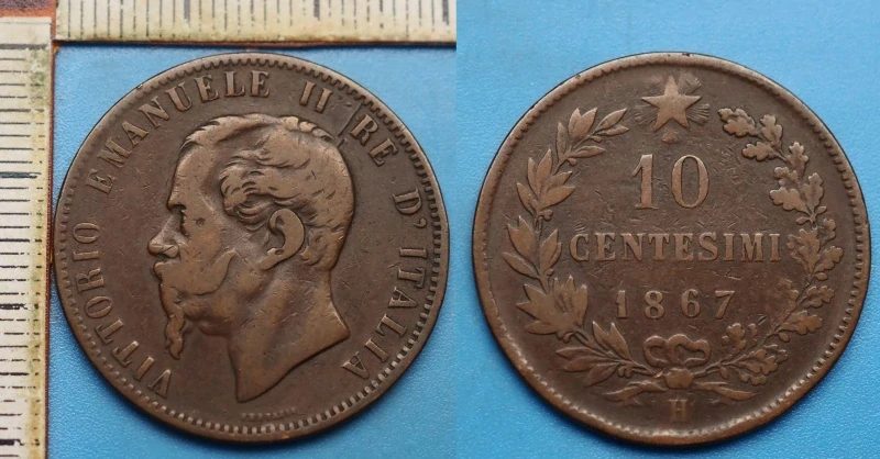 1867 H - 10 centesimi - Vittorio Emanuele II., Itálie