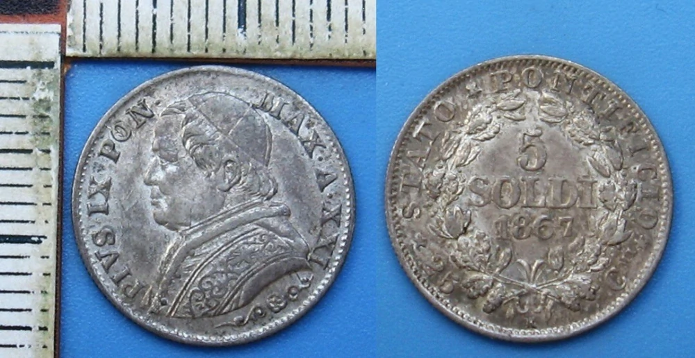 • 1867 XXII - 5 soldi, stříbro - Pius IX., Vatikán