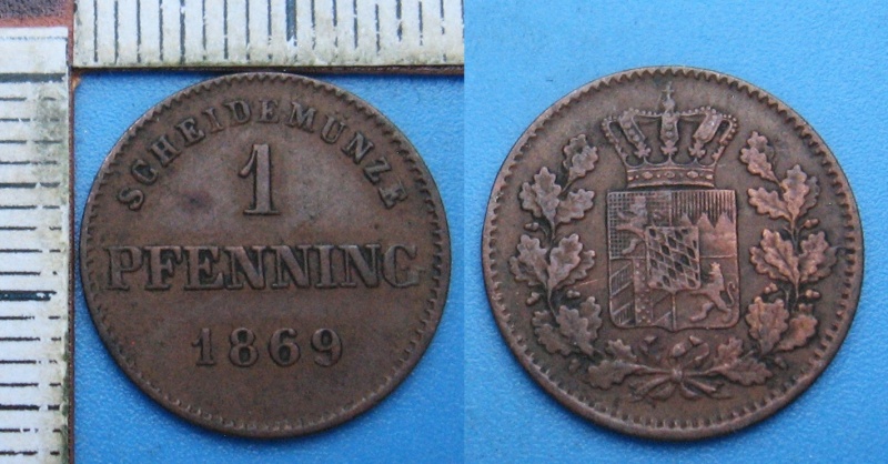 • 1869 - 1 pfenning - Bavorsko, Maximilian II.