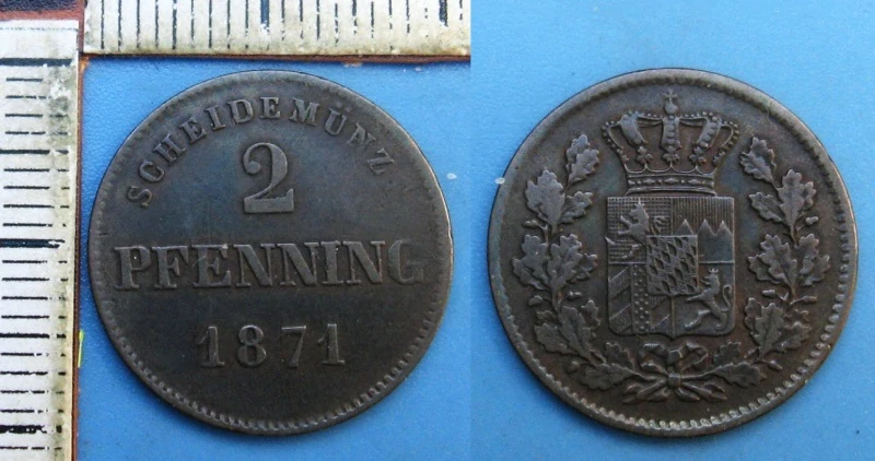 • 1871 - 2 pfennig - Ludwig II., Bavorsko