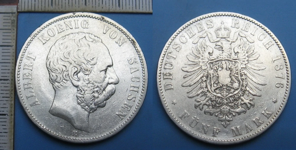 • 1876 E - 5 mark, stříbro - Sasko, Albert, Drážďany