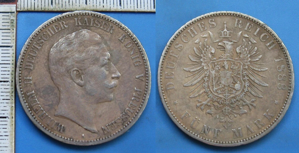 • 1888 A - 5 mark, stříbro - Wilhelm II., Prusko