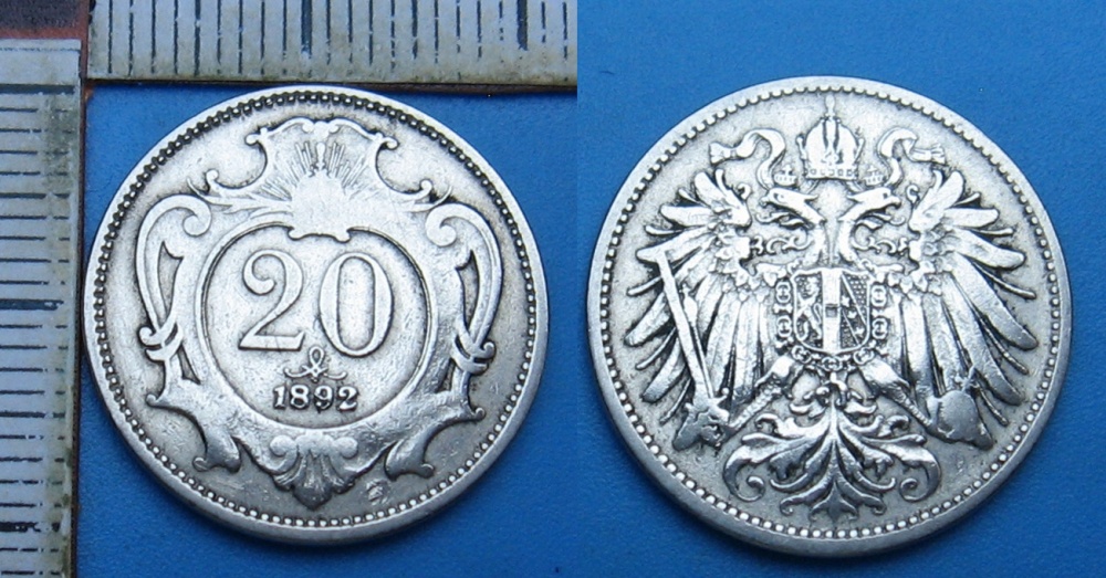 - 1892 R - 20 haléřů - František Josef I., vzácnější