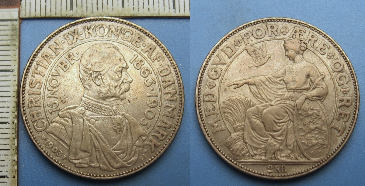 1903 - 2 krone, stříbro - Dánsko, Christian IX., 40. výročí panování