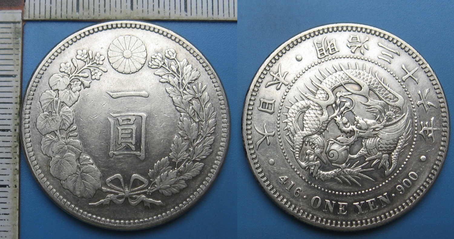 • 1903 (36) - 1 jen, stříbro - Japonsko, éra Meiji (Mustsuhito)
