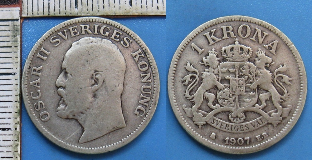 • 1907 EB - 1 krona, stříbro - Oscar II., Švédsko