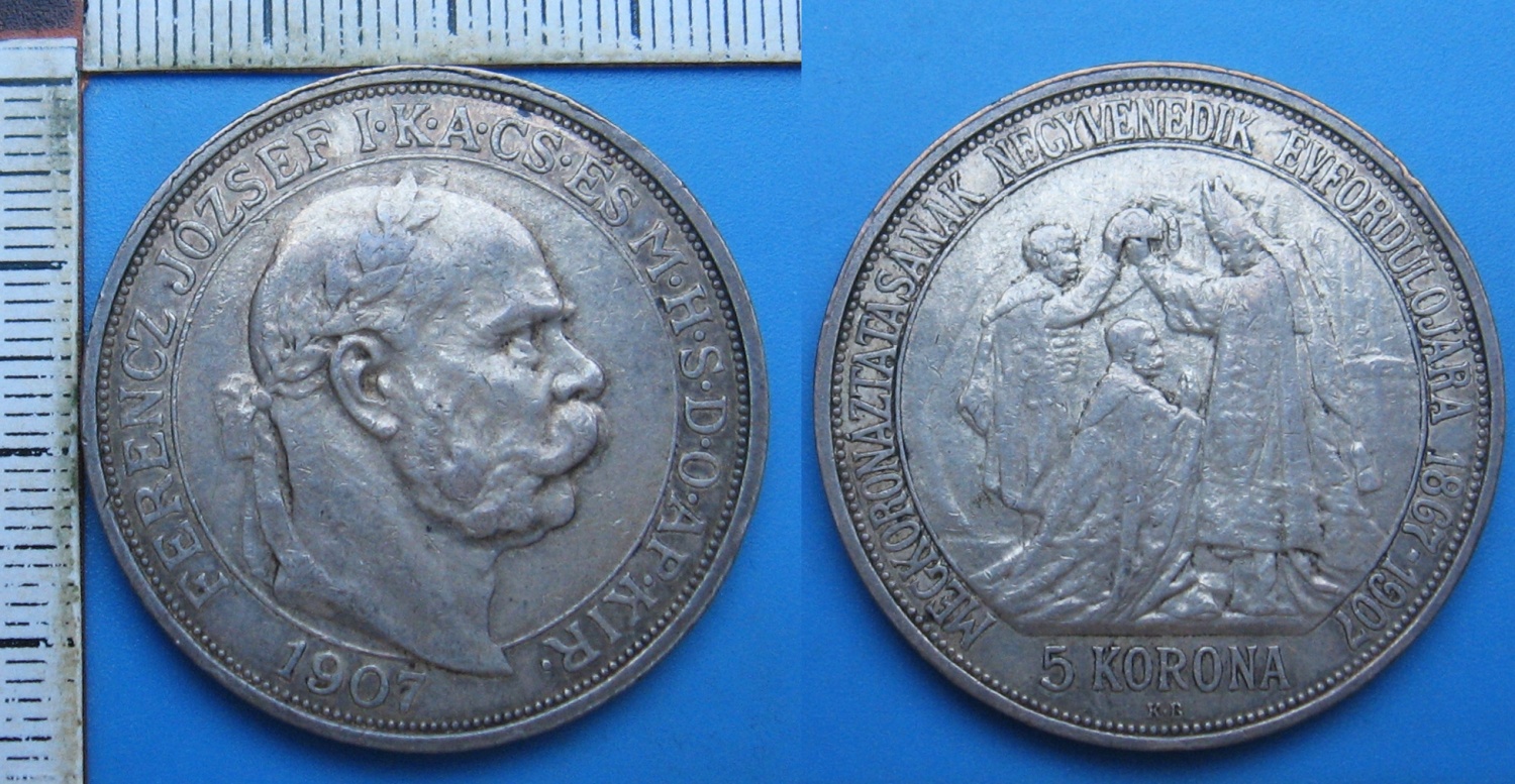 - 1907 KB - 5 korun, stříbro - František Josef I., pamětní