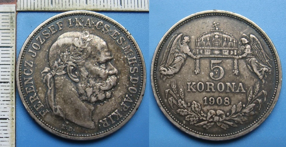 - 1908 KB - 5 koruna, stříbro - František Josef I.