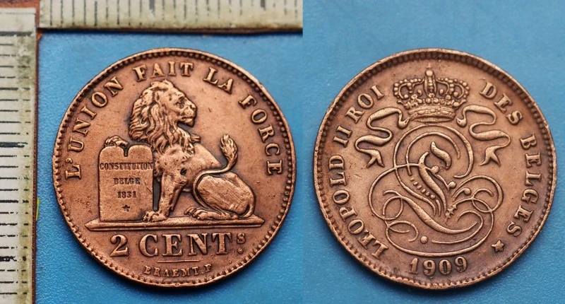 • 1909 - 2 centimes - Leopold II., Belgie