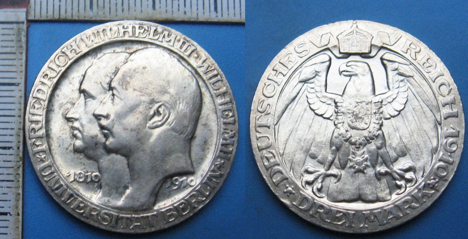 1910 A - 3 marka, stříbro - Prusko, Wilhelm II., Universita Berlín