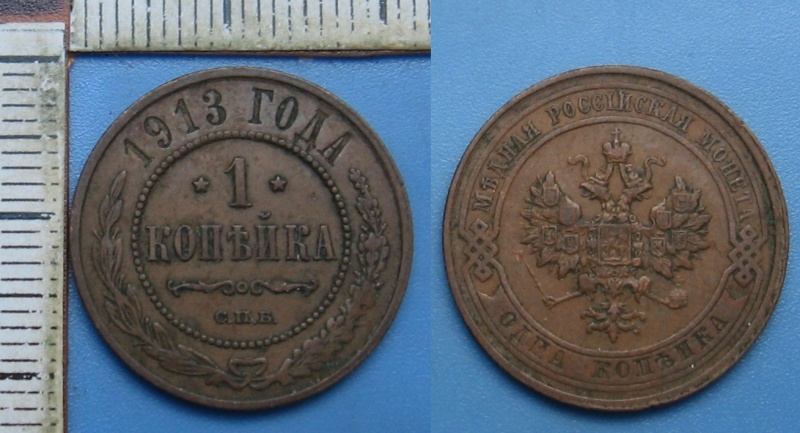 - 1913 - 1 kopejka - Carské Rusko, Mikuláš II., pěkná