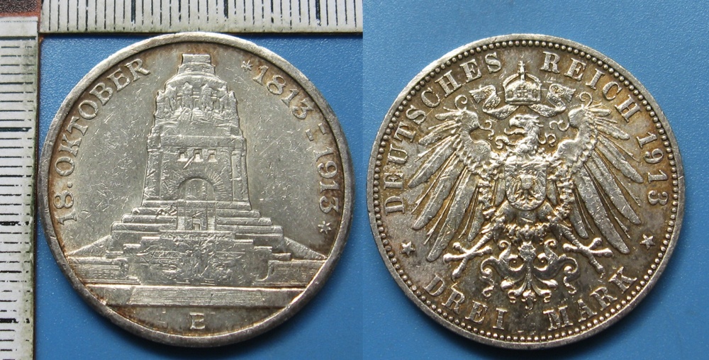 • 1913 E - 3 mark, stříbro - Fridrich August II., Sasko