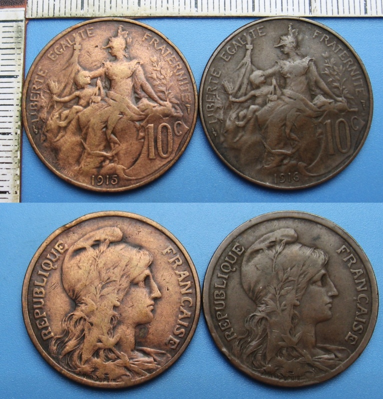 • 1915, 16 - 2x 10 centimes - Francie