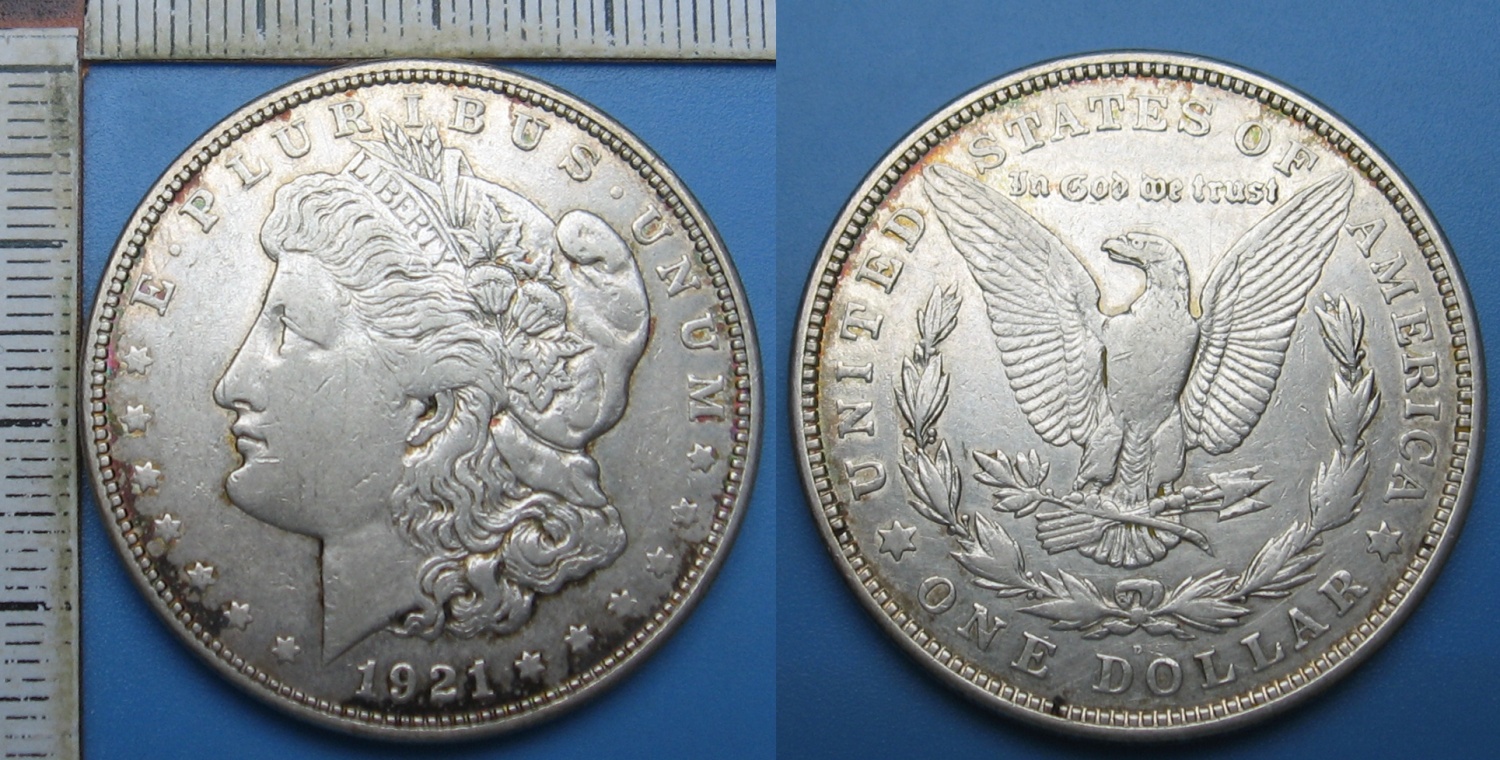 • 1921 D - 1 dollar, stříbro - USA, Morgan