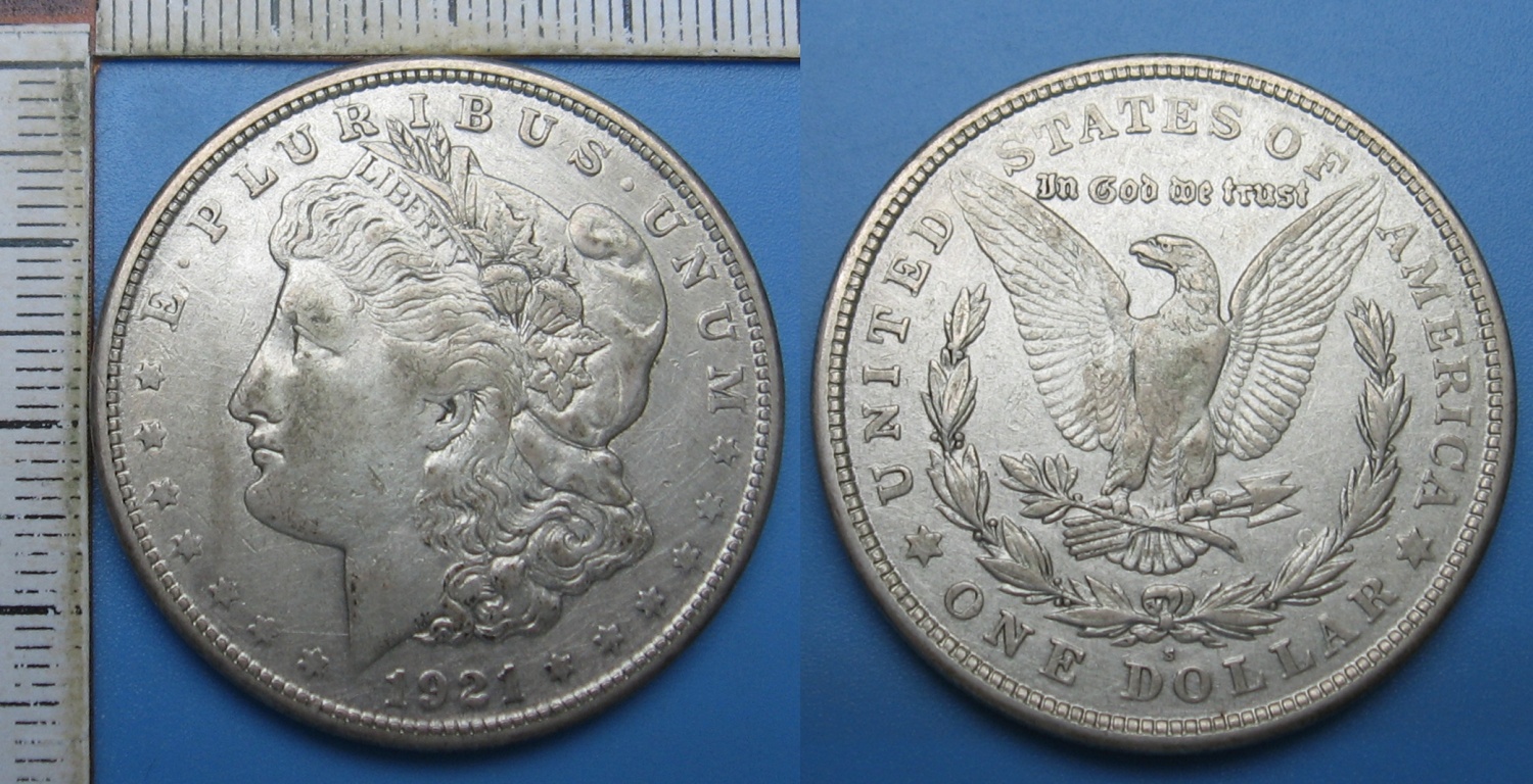 4. 1921 S - 1 dollar, stříbro - USA, Morgan