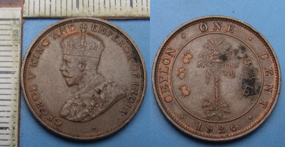 - 1926 - 1 cent - Britský Cejlon, Jiří V.