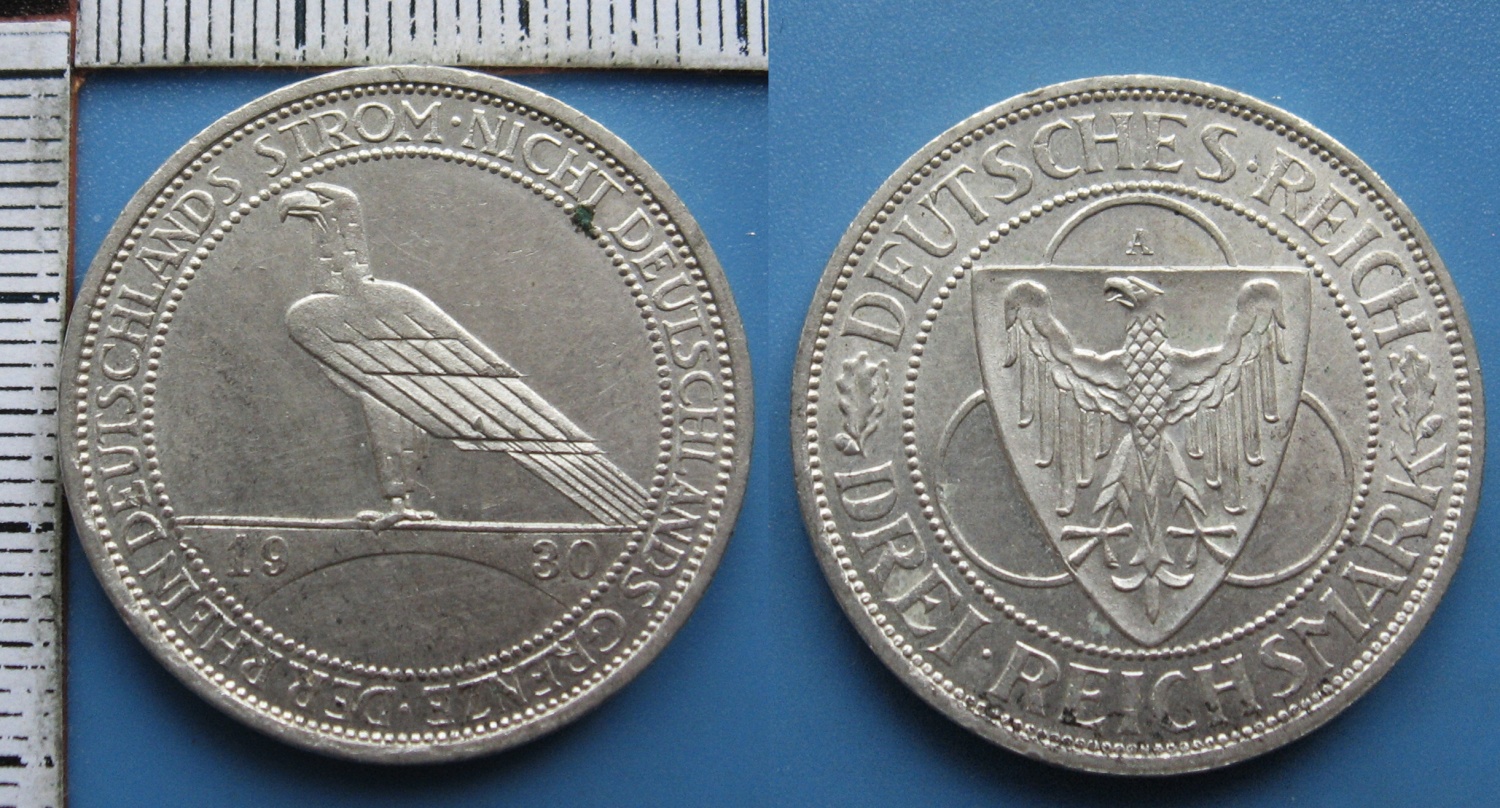 • 1930 A - 3 reichsmark, stříbro - Weimar, Rýn je německý