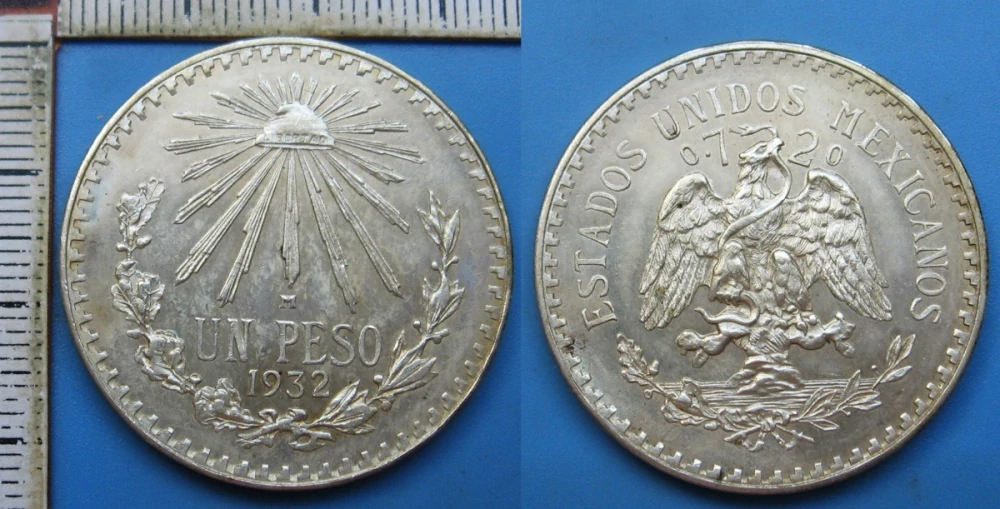 1932 - 1 peso, stříbro - Mexiko, krásná
