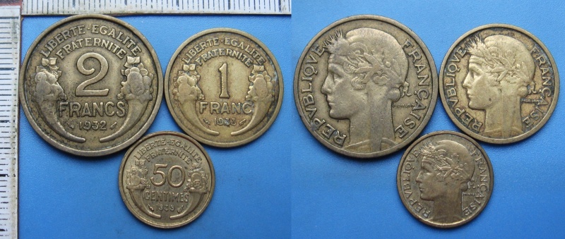 4. 1932-39 - 50 centimes, 1 a 2 francs - 3x Francie