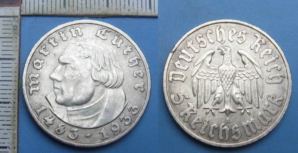 1933 A - 5 reichsmark, stříbro - Německo, Třetí říše, Martin Luther