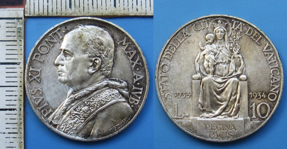 • 1933/34 IVB - 10 lir, stříbro - Pius XI., Vatikán, výroční