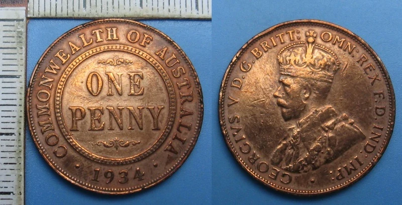 4. 1934 - 1 penny - Jiří V., Austrálie