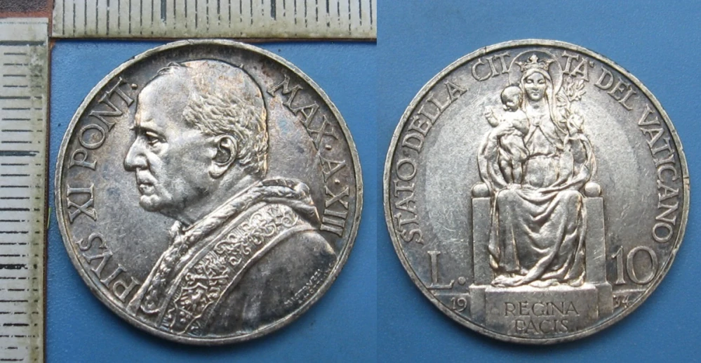 • 1934 XIII - 10 lir, stříbro - Pius XI., Vatikán