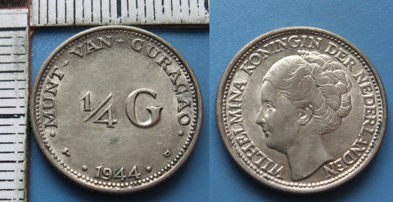 1944 - 1/4 guldenu, stříbro - Holandské Curacao, Wilhelmina