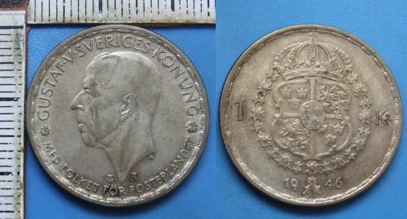 • 1946 - 1 krone, stříbro - Gustaf V., Švédsko