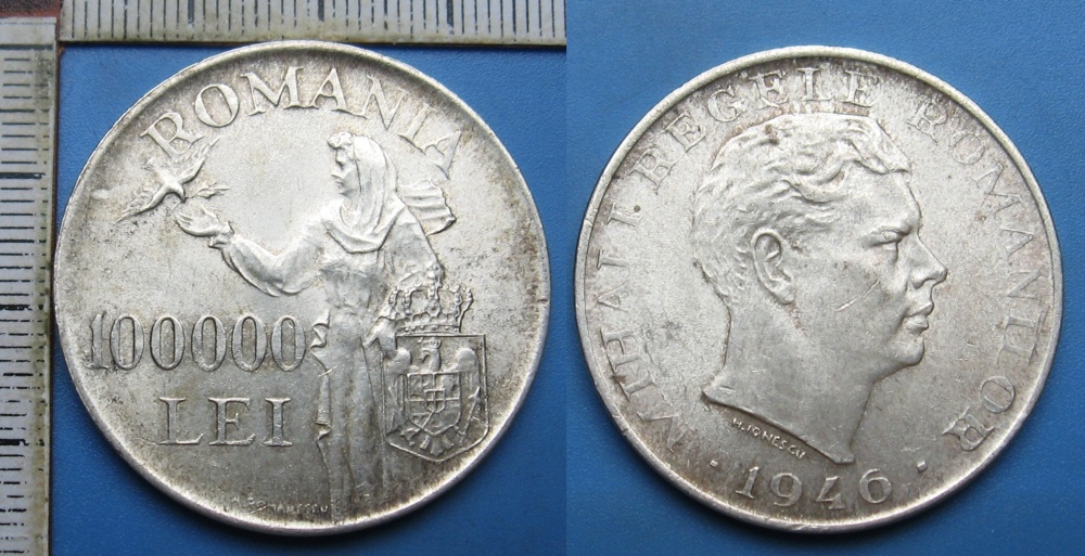 • 1946 - 100000 lei, stříbro - Rumunsko, Michal I.